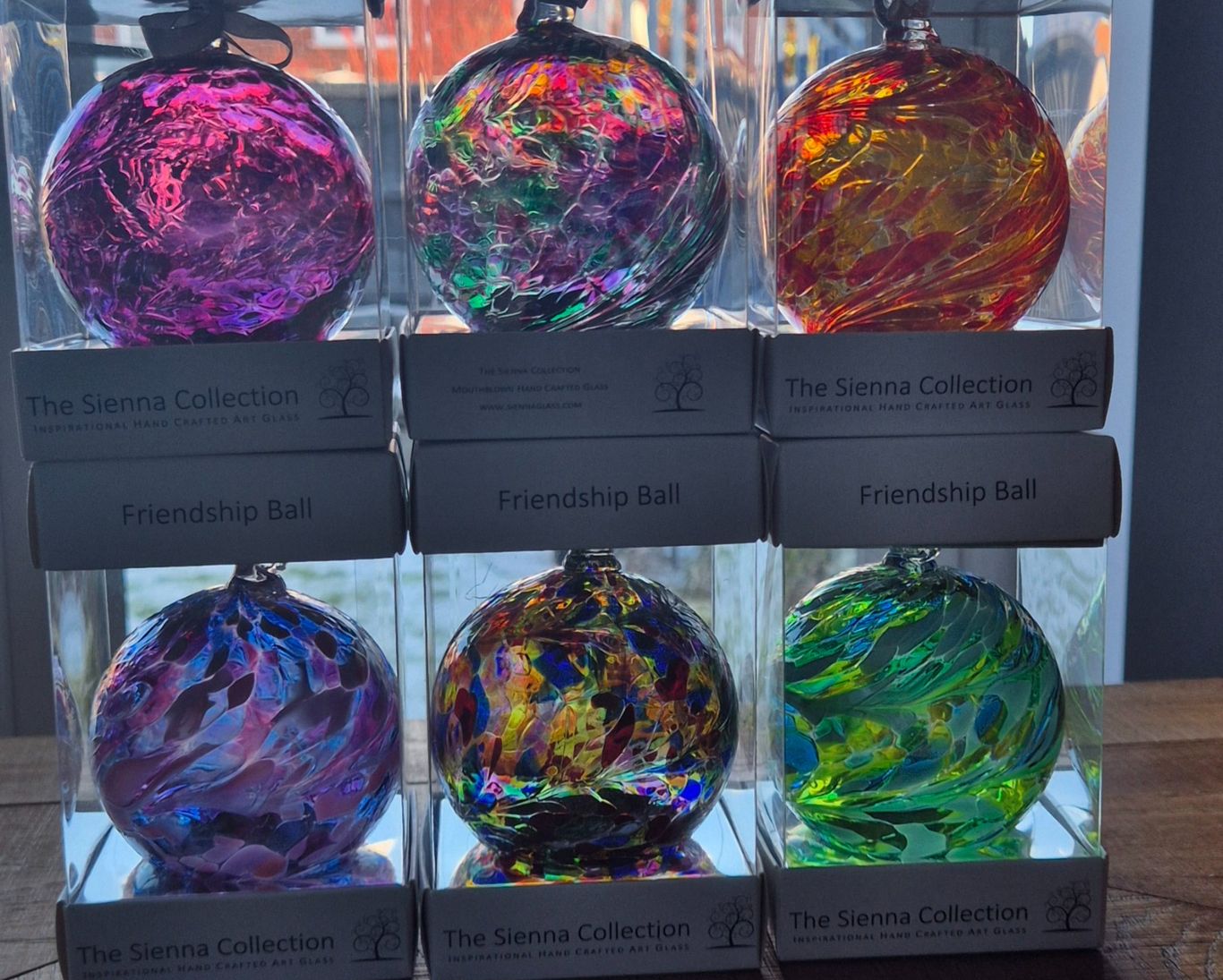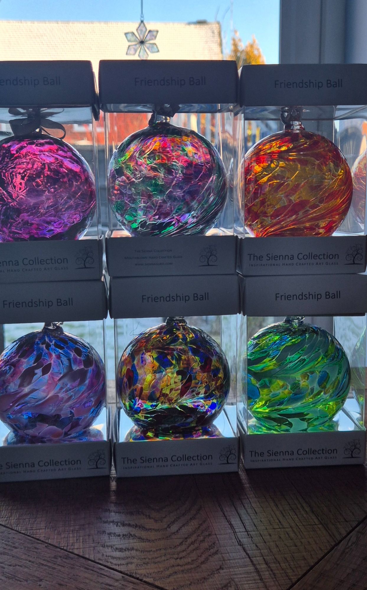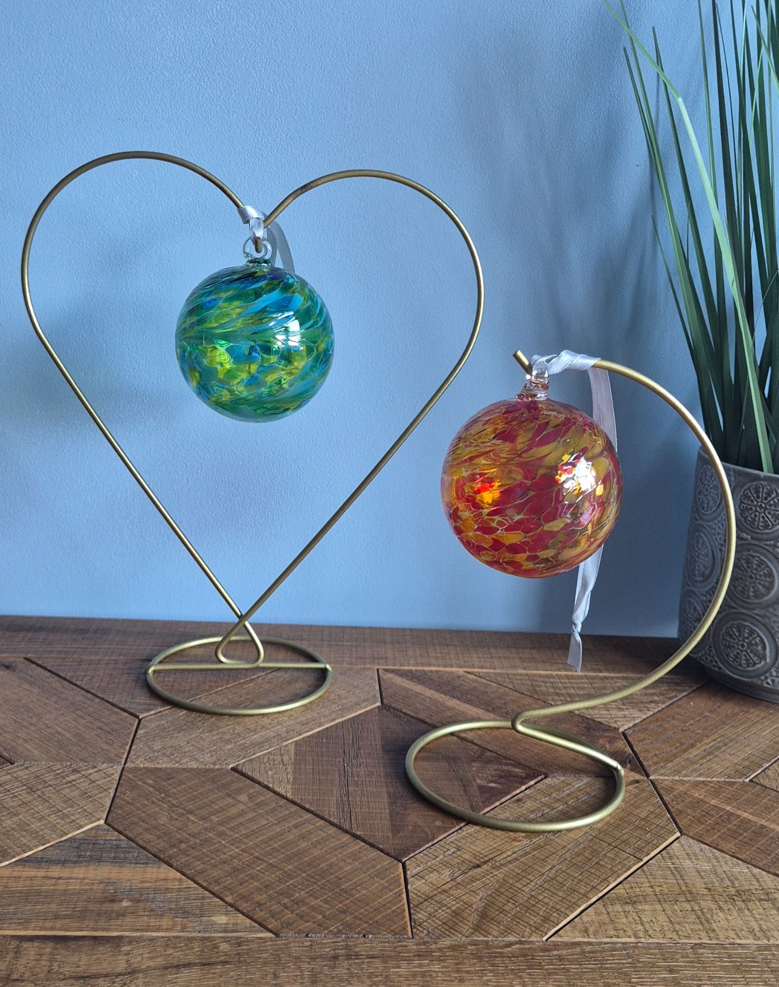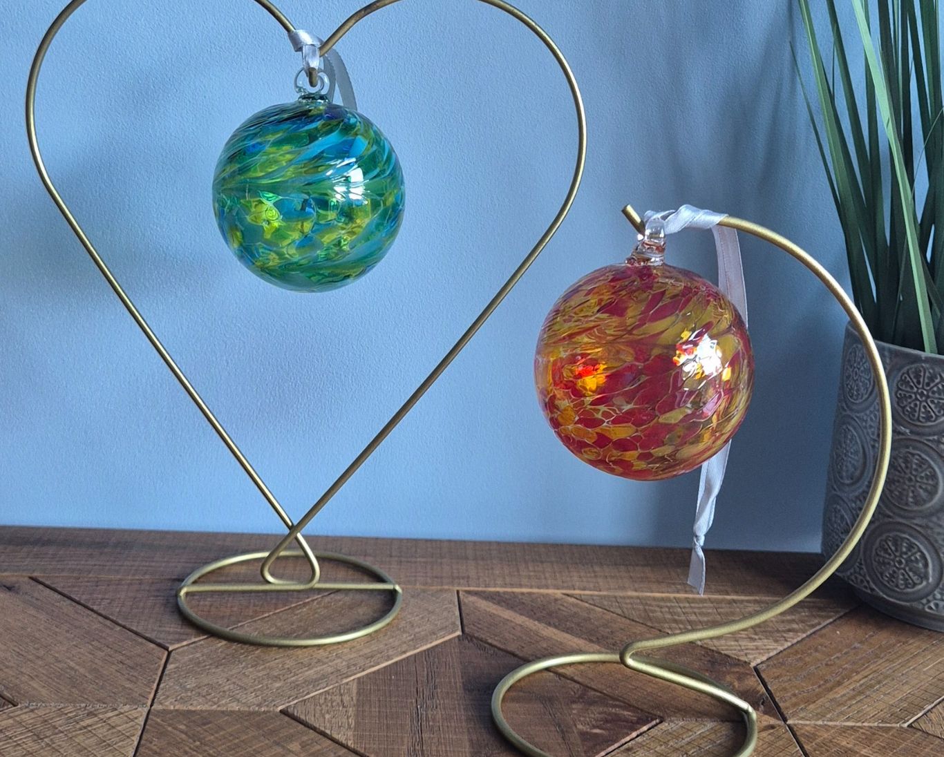 Beautiful Glass Hearts & Balls are available via the online shop.
